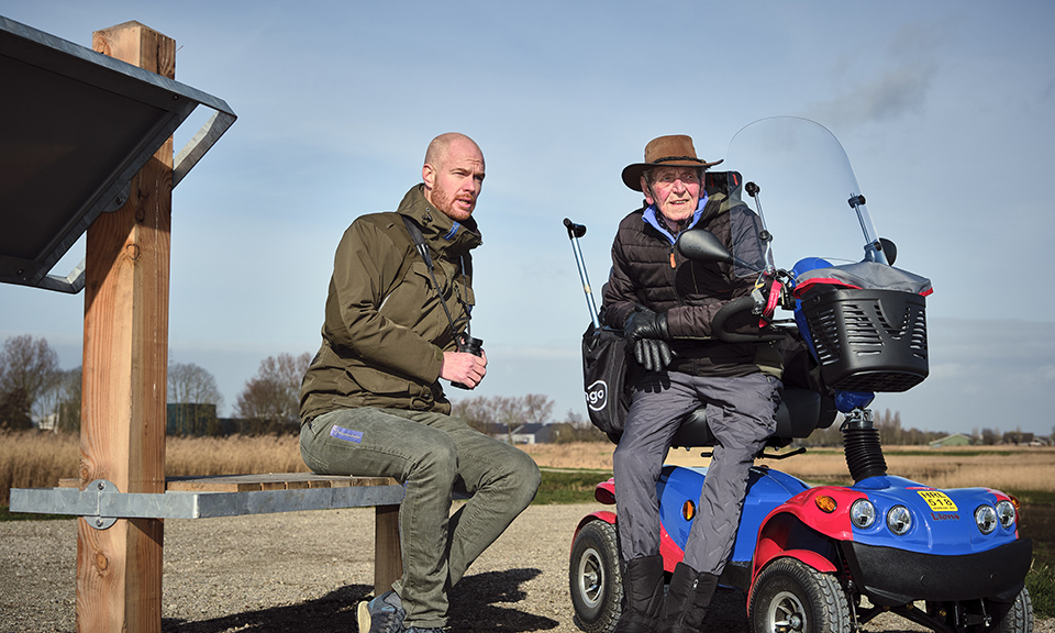Daar sluit Balvert zich bij aan. Sinds hij zijn auto heeft verruild voor een scootmobiel, komt hij veel vaker buiten. “Ik heb het nu veel meer naar mijn zin. Als ik rondrijd zie ik van alles.” Zo heeft hij al verschillende vogels ontdekt in het gebied. “Ik heb de roerdomp hier weleens gezien, maar ook fazanten en sperwers. Die vliegen hier allemaal rond.”