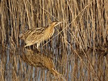 De roerdomp is een mysterieuze vogel, die je vaker hoort dan ziet. Als je het geluid van een soort misthoorn hoort dan weet je dat de roerdomp ergens in het riet verscholen zit.